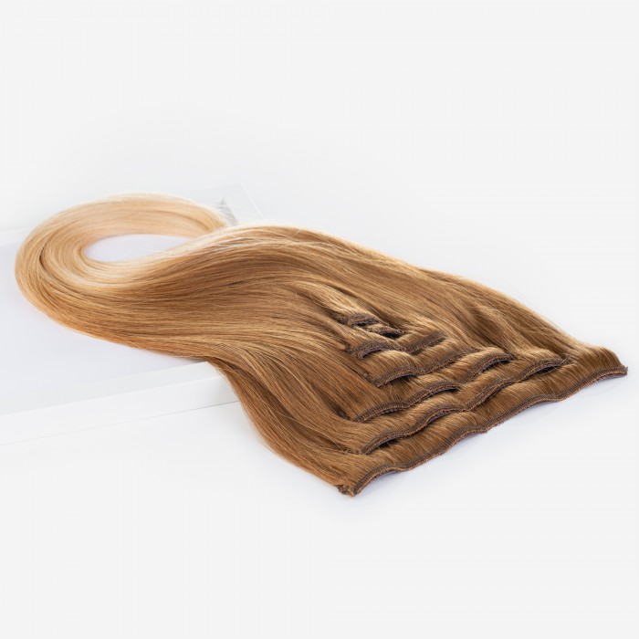 Le Kit Bellissima Extensions de Tête Entière à clips dans la palette de couleurs Ombrée permet un effet d'éclaircissement progressif des tons sombres aux tons clairs sans aucun traitement chimique.
